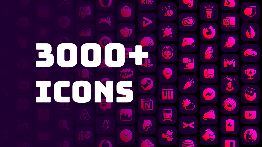 ✨ Glam cyberpunk design: CyberGLAM icons boast a red to fuchsia gradient on a dark purple background.