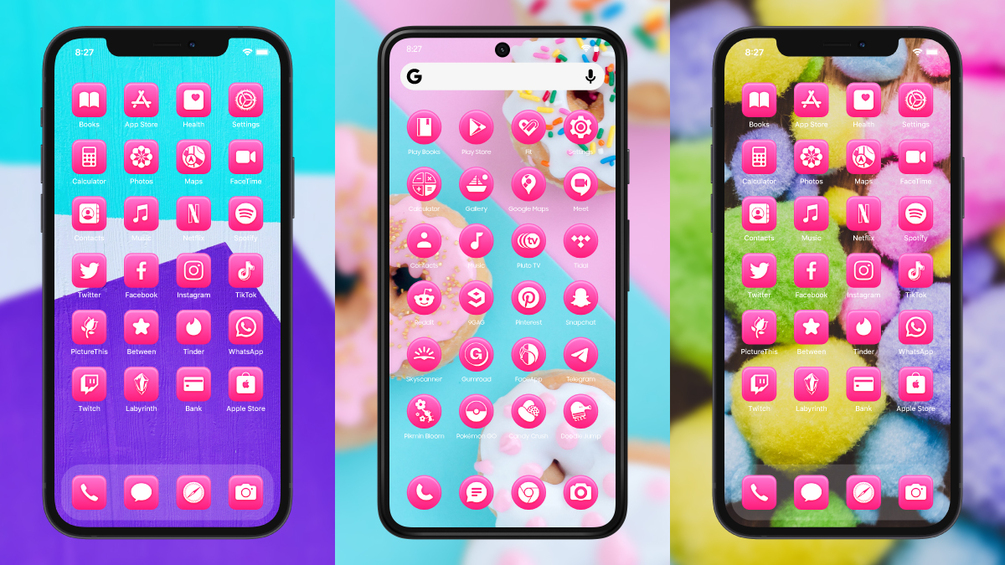 ✨ Pink Candies icon pack comes with 3000+ unique PNG icons, each in 3 different shapes: one for iOS and two for Android (Rounded square and Round).